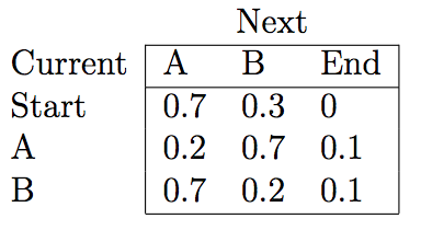 如果是在一系列观测序列 $x=(x_{1}, \dots, x_{n})$ 的基础上来预测一个类别序列 $y=(y_{1}, \dots, y_{n})$, 我们可以建立一个简单的序列模型:把单一的NB模型乘起来