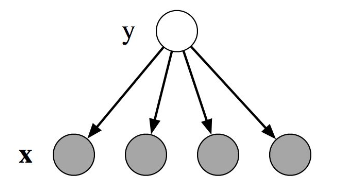 $$p(y,x)=p(y)\prod_{k=1}^{K} p(x_k|y)$$